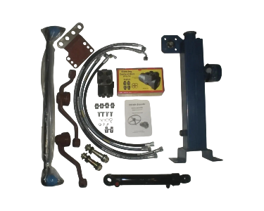 - Гидравлический комплект с гидробаком. Удобен для тех, кто хочет полностью уйти от старых рулевых тяг и редукторов, не требует доработок и обеспечивает стабильную работу.